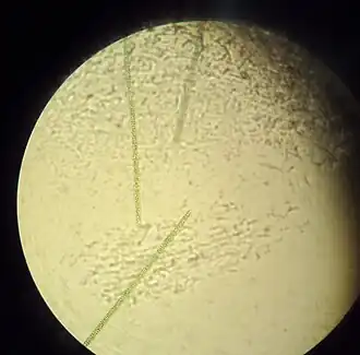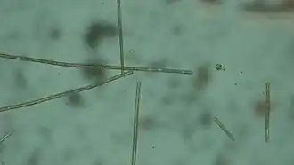 Planktothrix is a diverse genus of filamentous cyanobacteria observed to amass in algal blooms in water ecosystems across the globe. Like all Oscillatoriales, Planktothrix species have no heterocysts and no akinetes. Planktothrix are unique because they have trichomes and contain gas vacuoles unlike typical planktonic organisms.[1] Previously, some species of the taxon were grouped within the genus Oscillatoria, but recent work has defined Planktothrix as its own genus.[2] A tremendous body of work on Planktothrix ecology and physiology has been done by Anthony E. Walsby, and the 55.6 kb microcystin synthetase gene which gives these organisms the ability to synthesize toxins has been sequenced.[3] P. agardhii is an example of a type species of the genus.[4] P. agardhii and P. rubescens are commonly observed in lakes of the Northern Hemisphere where they are known producers of potent hepatotoxins called microcystins.[5]