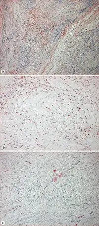 | a)Deparaffinized and stained with anti-POSTN antibody b) anti-CD163 antibody c) anti-CD206 antibody | |