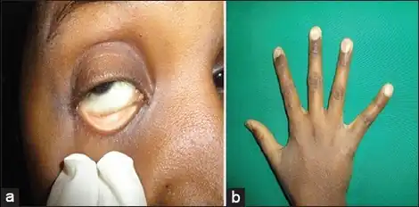 - Pallor of the conjunctiva and face