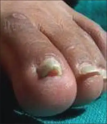 Plummer's nail is a clinical sign in which there is onycholysis, or separation of the nail from the nail bed, particularly affecting the ring and little fingers. It occurs in patients with thyrotoxicosis.[1] About 5% of hyperthyroid patients display abnormal nail changes.[2] Plummer's nail is also associated with psoriasis, traumatic injury, and allergic contact dermatitis.[3]