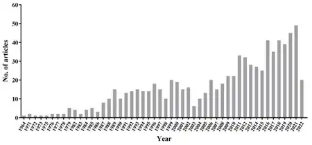 Number of reports on PCP in transplant recipients from 1964 to 2022[31]