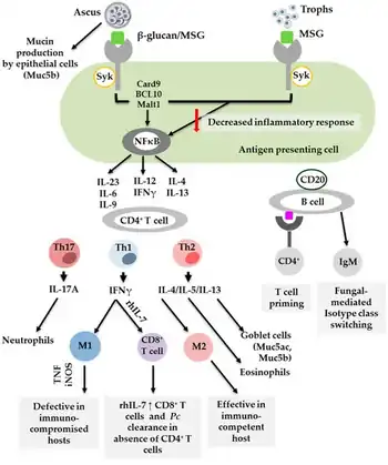 18. Duboucher C, Boggia R, Morel G, Capron M, Pierce RJ, Dei-Cas E, Viscogliosi E (December 2007). "Pneumocystis pneumonia: immunosuppression, Pneumocystis jirovecii...and the third man". Nature Reviews. Microbiology. 5 (12): 967. doi:10.1038/nrmicro1621-c1. PMID 19507333. S2CID 33897311.