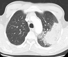 Cavitating pneumonia due to MRSA as seen on a CT scan