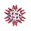 Poliovirus is composed of an RNA genome and a protein capsid. The genome is a single-stranded positive-sense RNA (+ssRNA) genome that is about 7500 nucleotides long.[2] The viral particle is about 30 nm in diameter with icosahedral symmetry. Because of its short genome and its simple composition—only RNA and a nonenveloped icosahedral protein coat that encapsulates it—poliovirus is widely regarded as the simplest significant virus.[3]