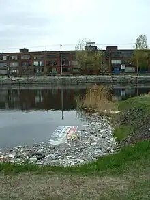 • Water pollution, caused by the discharge of industrial wastewater from commercial and industrial waste (intentionally or through spills) into surface waters; discharges of untreated sewage and chemical contaminants, such as chlorine, from treated sewage; and releases of waste and contaminants into surface runoff flowing to surface waters (including urban runoff and agricultural runoff, which may contain chemical fertilizers and pesticides, as well as human feces from open defecation).[9][10][11]