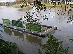 A litter trap catches floating waste in the Yarra River, east-central Victoria, Australia