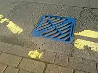 Blue drain and yellow fish symbol used by the UK Environment Agency to raise awareness of the ecological impacts of contaminating surface drainage