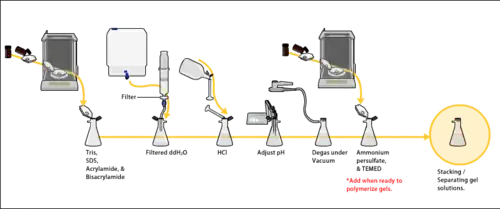 - ↑ 15.0 15.1 "A guide to Polyacrylamide gel electrophoresis and detection" (PDF). Bio-Rad. Archived (PDF) from the original on 8 May 2022. Retrieved 7 May 2023. Archived 8 May 2022 at the Wayback Machine