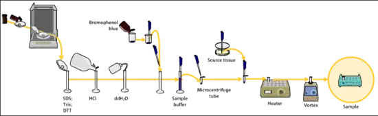 Samples may be any material containing proteins or nucleic acids, these may be biologically derived, for example from prokaryotic or eukaryotic cells, tissues, viruses, environmental samples, or purified proteins. In the case of solid tissues or cells, these are often first broken down mechanically using a blender,or using a homogenizer, and a combination of biochemical and mechanical techniques may be used to separate different cell compartments and organelles prior to electrophoresis.[14][15][16]