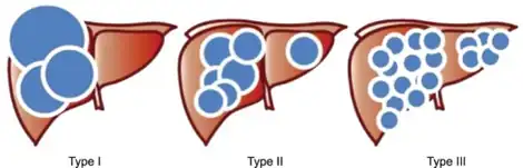 - ↑ Zhang ZY, Wang ZM, Huang Y (March 2020). "Polycystic liver disease: Classification, diagnosis, treatment process, and clinical management". World Journal of Hepatology. 12 (3): 72–83. doi:10.4254/wjh.v12.i3.72. PMC 7097502. PMID 32231761.