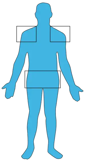 | Usual location of pain in polmyalgia rheumatica | |