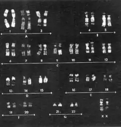 - ↑ Yunis JJ, Sanchez O (1973). "G-banding and chromosome structure". Chromosoma. 44 (1): 15–23. doi:10.1007/BF00372570. PMID 4130183. S2CID 8711896.