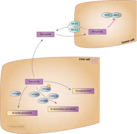 - ↑ "Ponatinib Pathway, Pharmacokinetics/Pharmacodynamics". PharmGKB.