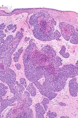 - ↑ Battistella M, Balme B, Jullie ML, Zimmermann U, Carlotti A, Crinquette M, Frouin E, Macagno N, Ortonne N, Lamant L, de la Fouchardiere A, Aubriot-Lorton MH, Durand L, Josselin N, Franck F, Chatelain D, Lemasson G, Algros MP, Durlach A, Machet MC, Courville P, Osio A, Seris A, Mortier L, Jouary T, Cribier B (January 2022). "Impact of expert pathology review in skin adnexal carcinoma diagnosis: Analysis of 2573 patients from the French CARADERM network". European Journal of Cancer. 163: 211–221. doi:10.1016/j.ejca.2021.11.027. PMID 35090811. S2CID 246388005.