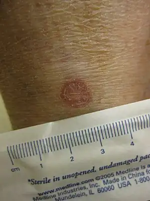 - ↑ 2.0 2.1 2.2 2.3 Rapini, Ronald P.; Bolognia, Jean L.; Jorizzo, Joseph L. (2007). Dermatology: 2-Volume Set. St. Louis: Mosby. p. 1668. ISBN 978-1-4160-2999-1.