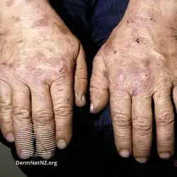 - ↑ 2.00 2.01 2.02 2.03 2.04 2.05 2.06 2.07 2.08 2.09 2.10 2.11 Oakley, Amanda (26 October 2023). "Porphyria cutanea tarda". DermNet. Archived from the original on 29 November 2024. Retrieved 25 March 2025. Archived 29 November 2024 at the Wayback Machine