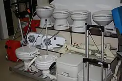 Early versions of the "Elsan chemical closet" ("closet" meaning a small room, see water closet, WC, and earth closet) were sold at Army & Navy Stores. Their use in World War II bomber aircraft[5] is described at some length by the Bomber Command Museum of Canada; in brief, they were not popular with either the flying crew or the ground crew.[6]
