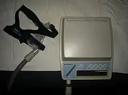 Positive airway pressure (PAP) is a mode of respiratory ventilation used in the treatment of sleep apnea. PAP ventilation is also commonly used for those who are critically ill in hospital with respiratory failure, in newborn infants (neonates), and for the prevention and treatment of atelectasis in patients with difficulty taking deep breaths. In these patients, PAP ventilation can prevent the need for tracheal intubation, or allow earlier extubation. Sometimes patients with neuromuscular diseases use this variety of ventilation as well. CPAP is an acronym for "continuous positive airway pressure", which was developed by Dr. George Gregory and colleagues in the neonatal intensive care unit at the University of California, San Francisco.[1] A variation of the PAP system was developed by Professor Colin Sullivan at Royal Prince Alfred Hospital in Sydney, Australia, in 1981.[2]