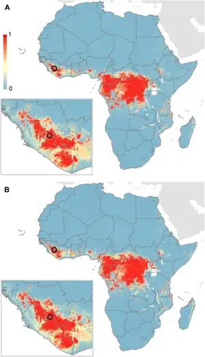 African continent-Comparison of predictions for zoonotic niche of Ebola virus