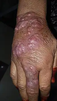 | Differential diagnosis | Leprosy, xanthoma, systemic lupus erythematosus, sarcoidosis, syphilis[2][4] |
