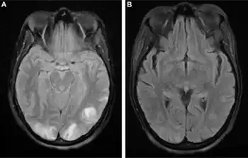 - ↑ Fugate, Jennifer E; Rabinstein, Alejandro A (September 2015). "Posterior reversible encephalopathy syndrome: clinical and radiological manifestations, pathophysiology, and outstanding questions". The Lancet Neurology. 14 (9): 914–925. doi:10.1016/S1474-4422(15)00111-8. PMID 26184985. S2CID 30727806.