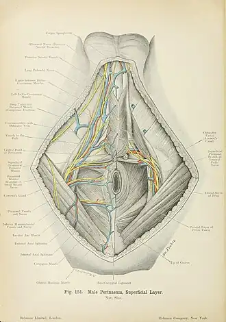 ![]() Posterior scrotal veins listed as "Posterior Scrotal Vessels" pointing at the blue vessel | |