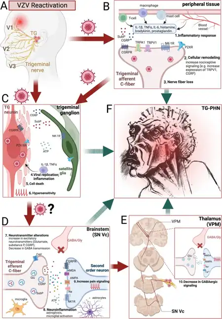 a-f)Overview of pathophysiology of trigeminal postherpetic neuralgia[2]