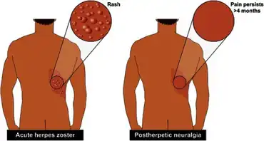3. 3.00 3.01 3.02 3.03 3.04 3.05 3.06 3.07 3.08 3.09 3.10 3.11 3.12 3.13 3.14 3.15 3.16 3.17 3.18 3.19 3.20 3.21 3.22 Johnson RW, Rice AS (October 2014). "Clinical practice. Postherpetic neuralgia". The New England Journal of Medicine (Review). 371 (16): 1526–33. doi:10.1056/NEJMcp1403062. PMID 25317872.