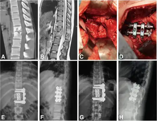 - ↑ Tang, Yong; Wu, Wen-jie; Yang, Sen; Wang, Dong-Gui; Zhang, Qiang; Liu, Xun; Hou, Tian-Yong; Luo, Fei; Zhang, Ze-hua; Xu, Jian-zhong (23 July 2019). "Surgical treatment of thoracolumbar spinal tuberculosis—a multicentre, retrospective, case-control study". Journal of Orthopaedic Surgery and Research. 14 (1): 233. doi:10.1186/s13018-019-1252-4. ISSN 1749-799X. PMC 6651955. PMID 31337417.