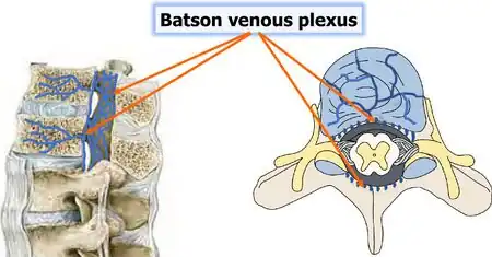 When dissemination occurs, MTB enters the cancellous or spongy bone of the vertebra through the vascular system.[9] It travels specifically from the front and back spinal arteries, and pressures within the torso spreads the infection throughout the vertebral body.[9][8]