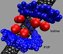 Research has previously found that the polymer polyvinylpyrrolidone (PVP, povidone) can coil around individual carbon nanotubes to make them water-soluble.[20]