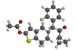 - ↑ Rehmel JL, Eckstein JA, Farid NA, Heim JB, Kasper SC, Kurihara A, et al. (April 2006). "Interactions of two major metabolites of prasugrel, a thienopyridine antiplatelet agent, with the cytochromes P450". Drug Metabolism and Disposition. 34 (4): 600–7. doi:10.1124/dmd.105.007989. PMID 16415119. S2CID 1698598.
