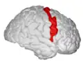 The precentral gyrus is a prominent gyrus on the surface of the posterior frontal lobe of the brain. It is the site of the primary motor cortex that in humans is cytoarchitecturally defined as Brodmann area 4.