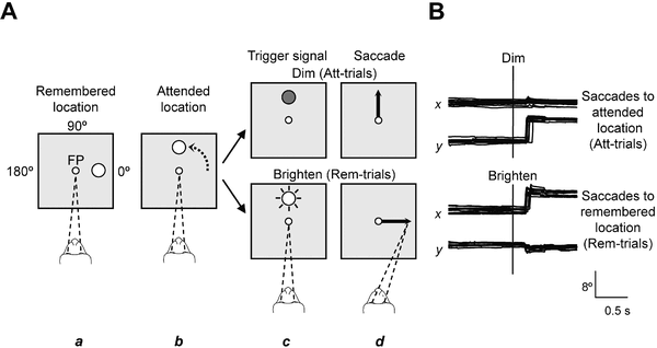To explore alternative interpretations of delay-period activity in the prefrontal cortex, Lebedev et al. (2004) investigated the discharge rates of single prefrontal neurons as monkeys attended to a stimulus marking one location while remembering a different, unmarked location.[43] Both locations served as potential targets of a saccadic eye movement. Although the task made intensive demands on short-term memory, the largest proportion of prefrontal neurons represented attended locations, not remembered ones. These findings showed that short-term memory functions cannot account for all, or even most, delay-period activity in the part of the prefrontal cortex explored. The authors suggested that prefrontal activity during the delay-period contributes more to the process of attentional selection (and selective attention) than to memory storage.[11][48]