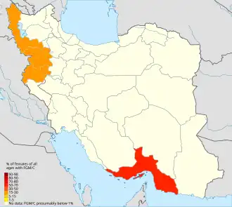 In West Asia, the practice mostly occurs in Kurdish regions,[23][24] and to a lesser extent in Jordan,[25][26] Oman,[27] United Arab Emirates[28] and Qatar.[29] Earlier reports claimed the prevalence of FGM in Israel among the Negev Bedouin, which by 2009 has virtually disappeared.[30]