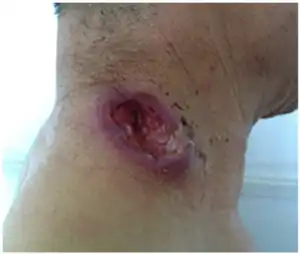 | A fresh lesion on the right side of the neck, the ulcer was oval | |