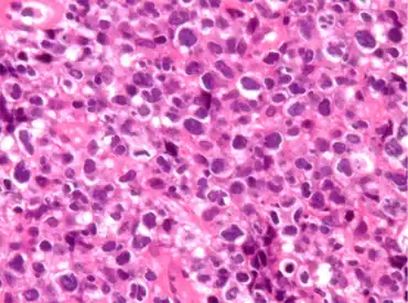 - ↑ 4.0 4.1 Martelli M, Di Rocco A, Russo E, et al. (2015). "Primary mediastinal lymphoma: diagnosis and treatment options". Expert Rev Hematol. 8 (2): 173–86. doi:10.1586/17474086.2015.994604. hdl:11573/780924. PMID 25537750. S2CID 23040185.