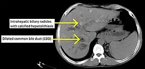 | Complications | Liver failure, gallbladder cancer, bile duct cancer, bile duct infection[2] |