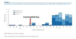 - ↑ Penttinen, P. M.; Kaasik-Aaslav, K.; Friaux, A.; Donachie, A.; Sudre, B.; Amato-Gauci, A. J.; Memish, Z. A.; Coulombier, D. (September 26, 2013). "Taking stock of the first 133 MERS coronavirus cases globally – Is the epidemic changing?". Eurosurveillance. 18 (39) 20596. doi:10.2807/1560-7917.ES2013.18.39.20596. PMID 24094061.
