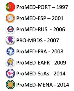 Program for Monitoring Emerging Diseases (also known as ProMED-mail, abbreviated ProMED) is among the largest publicly available emerging diseases and outbreak reporting systems in the world.[1] The purpose of ProMED is to promote communication amongst the international infectious disease community, including scientists, physicians, veterinarians, epidemiologists, public health professionals, and others interested in infectious diseases on a global scale. Founded in 1994, ProMED has pioneered the concept of electronic, Internet-based emerging disease and outbreak detection reporting.[2] In 1999, ProMED became a program of the International Society for Infectious Diseases. As of 2016, ProMED has more than 75,000 subscribers in over 185 countries.[3] With an average of 13 posts per day, ProMED provides users with up-to-date information concerning infectious disease outbreaks on a global scale.