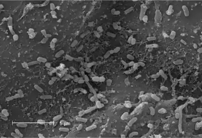 - ↑ Altenhoefer, Artur; Oswald, Sibylle; Sonnenborn, Ulrich; Enders, Corinne; Schulze, Juergen; Hacker, Joerg; Oelschlaeger, Tobias A (April 2004). "The probiotic Escherichia coli strain Nissle 1917 interferes with invasion of human intestinal epithelial cells by different enteroinvasive bacterial pathogens". FEMS Immunology & Medical Microbiology. 40 (3): 223–229. doi:10.1016/S0928-8244(03)00368-7. PMID 15039098.