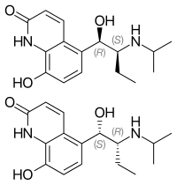 - 1 2 Yoshizaki S, Manabe Y, Tamada S, Nakagawa K, Tei S (August 1977). "Isomers of erythro-5-(1-hydroxy-2-isopropylaminobutyl)-8-hydroxycarbostyril, a new bronchodilator". Journal of Medicinal Chemistry. 20 (8): 1103–1104. doi:10.1021/jm00218a024. PMID 894683.