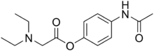 Propacetamol is a prodrug form of paracetamol which is formed from esterification of paracetamol, and the carboxylic acid diethylglycine. This has the advantage of making it more water-soluble. It is used in post-operative care and is delivered by I.V.[2] It is given if the patient is unable to take oral or rectally delivered paracetamol and nonsteroidal anti-inflammatory drugs (NSAIDs) are contraindicated. The onset of analgesia from propacetamol is more rapid than paracetamol given orally.[3] 2 grams of propacetamol are equivalent to 1g of paracetamol.[4]