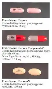 Trade name: Doloxene (100 mg; dextropropoxyphene napsylate)