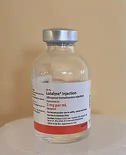 Lutalyse is used for the treatment of pyometra in domestic dogs and cats.[10] The drug is also administered to dairy cows in order to reduce uterine infections.[11]