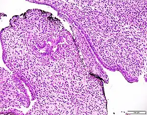 - ↑ De Berardinis, E.; Busetto, GM.; Antonini, G.; Giovannone, R.; Di Placido, M.; Magliocca, FM.; Di Silverio, A.; Gentile, V. (2012). "Incidental prostatic stromal tumor of uncertain malignant potential (STUMP): histopathological and immunohistochemical findings". Urologia. 79 (1): 65–8. doi:10.5301/RU.2012.9099. hdl:11573/439539. PMID 22388992. S2CID 14922067.