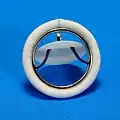 Introduced in 1969, the first clinically available tilting-disc valve was the Bjork-Shiley valve.[19] Tilting‑disc valves, a type of swing check valve, are made of a metal ring covered by an ePTFE fabric. The metal ring holds, by means of two metal supports, a disc that opens when the heart beats to let blood flow through, then closes again to prevent blood flowing backwards. The disc is usually made of an extremely hard carbon material (pyrolytic carbon), enabling the valve to function for years without wearing out.