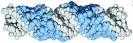 {{cite journal}}: CS1 maint: unflagged free DOI (link) - ↑ Warrant RW, Kim SH (January 1978). "alpha-Helix-double helix interaction shown in the structure of a protamine-transfer RNA complex and a nucleoprotamine model". Nature. 271 (5641): 130–5. doi:10.1038/271130a0. PMID 622153. S2CID 4172929.