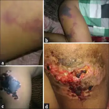 - ↑ 7.0 7.1 Chalmers E, Cooper P, Forman K, Grimley C, Khair K, Minford A, Morgan M, Mumford AD (2011). "Purpura fulminans: recognition, diagnosis and management". Arch Dis Child. 96 (11): 1066–1071. doi:10.1136/adc.2010.199919. PMID 21233082. S2CID 206846385.