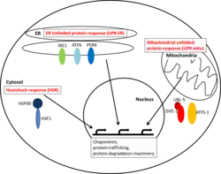 - ↑ Taylor RC, Berendzen KM, Dillin A (March 2014). "Systemic stress signalling: understanding the cell non-autonomous control of proteostasis". Nature Reviews. Molecular Cell Biology. 15 (3): 211–7. doi:10.1038/nrm3752. PMC 5922984. PMID 24556842.
